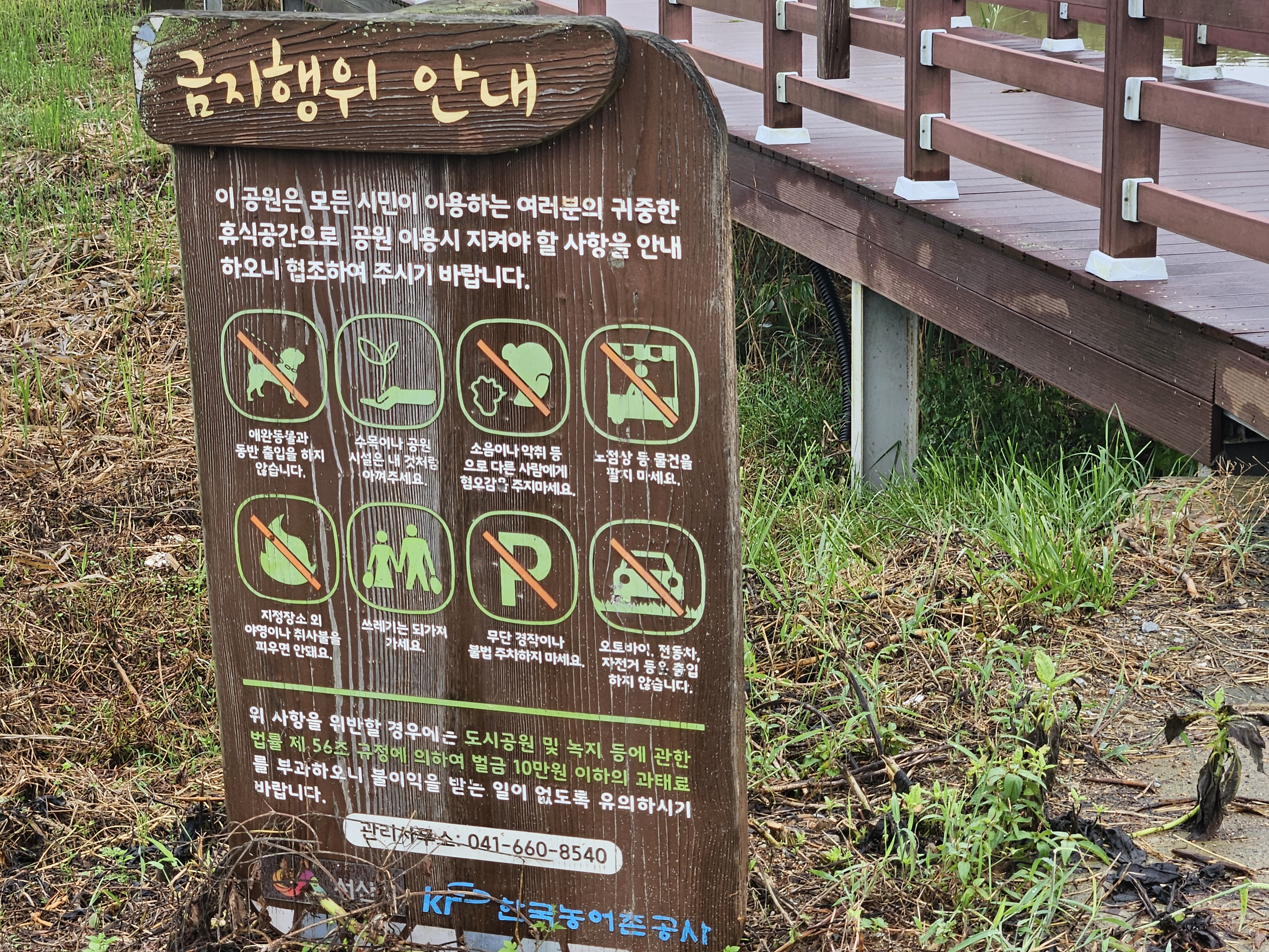 산책로가 조성되어 있긴 하지만 나무 데크로만 되어있고 좁아서 강아지와 함께 산책 할 수가 없었다.
